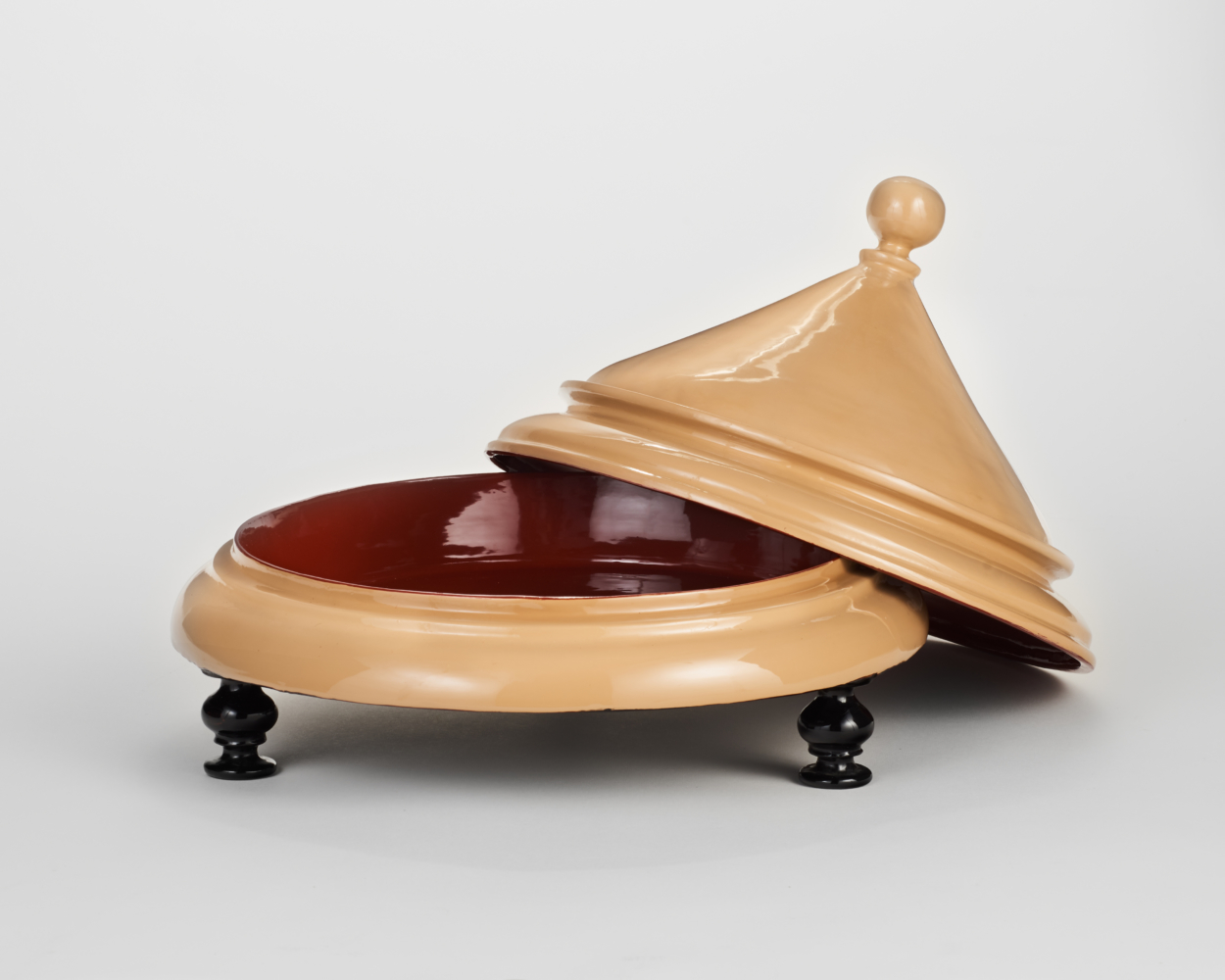 As a striking accent on the sideboard, our Domed Platter suggests a colorful and exotic origin. Still, as with many beautiful lacquerware pieces, it’s ready for service - with a vibrant interior and generous lip it presents an appealing main or side dish.