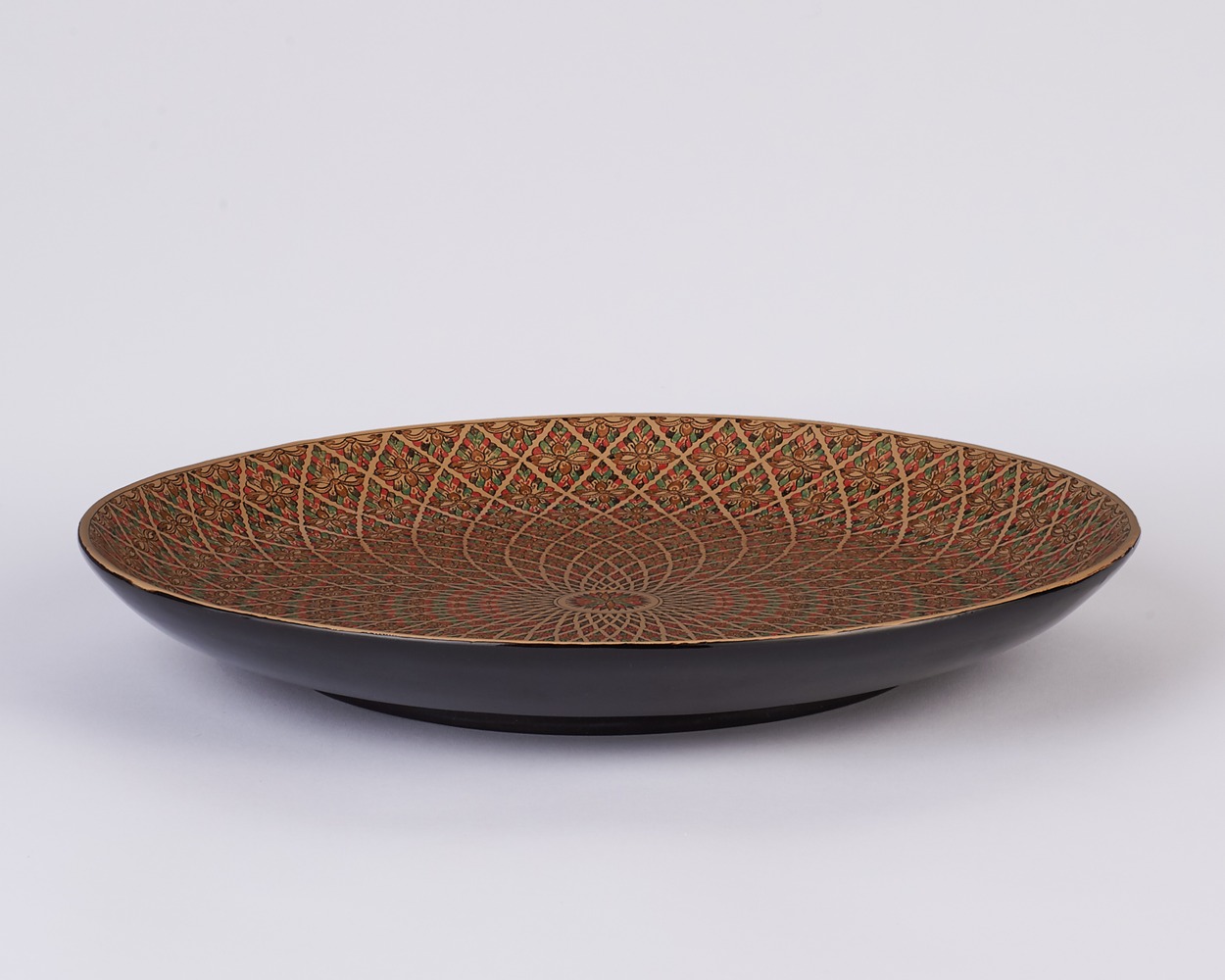 Handsome and confident, this eye-catching platter is equally at home displayed upright on an entryway table or flat on a tabletop. Its lively pattern is intricate, yet enthralling.