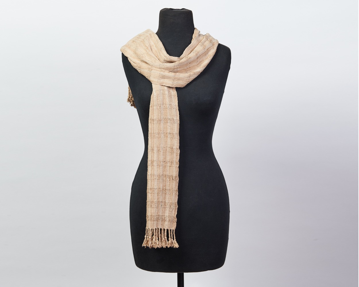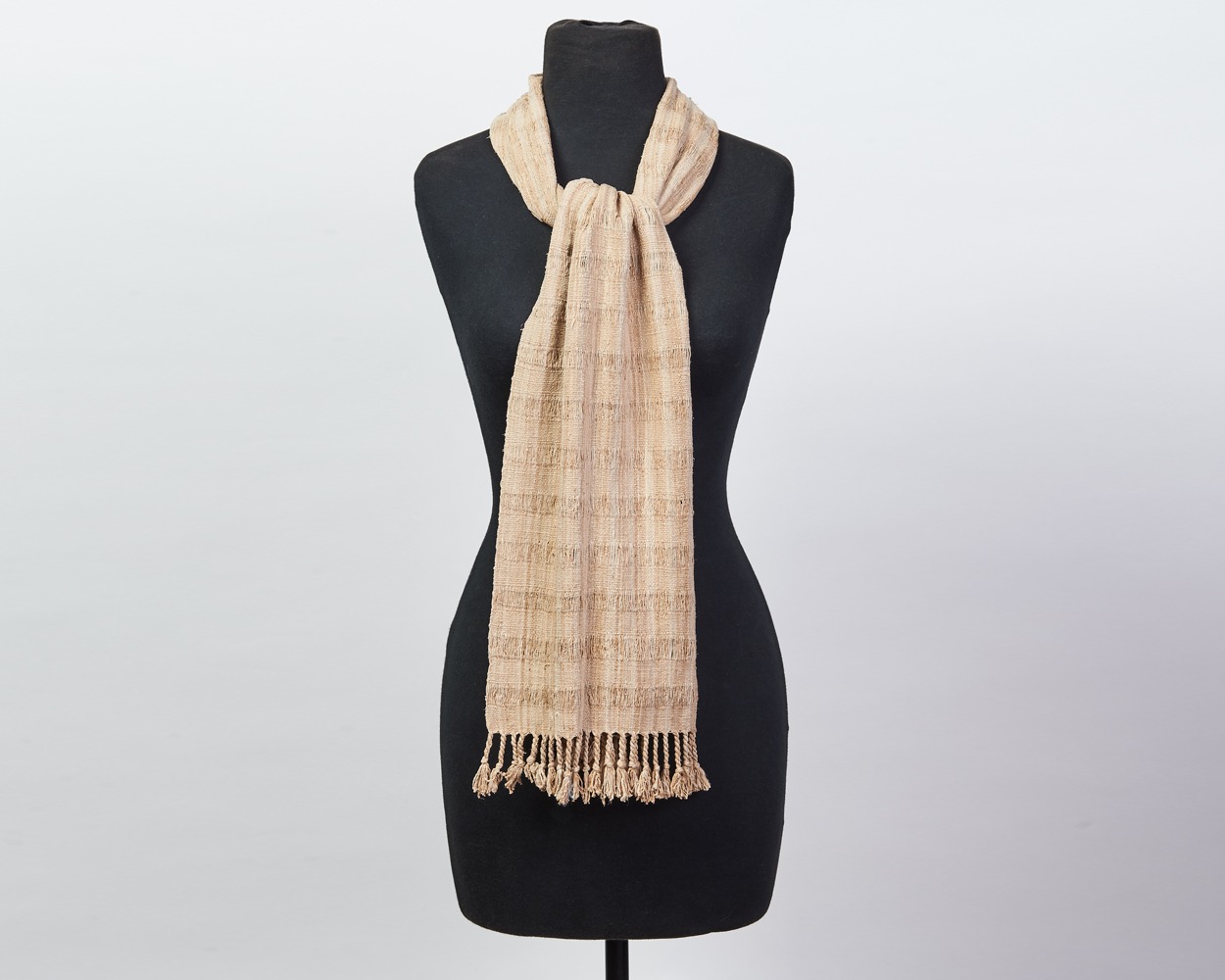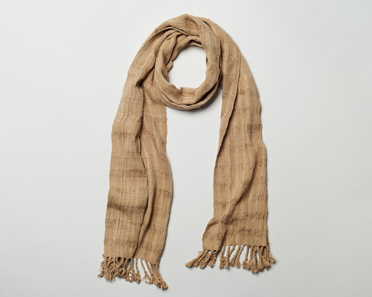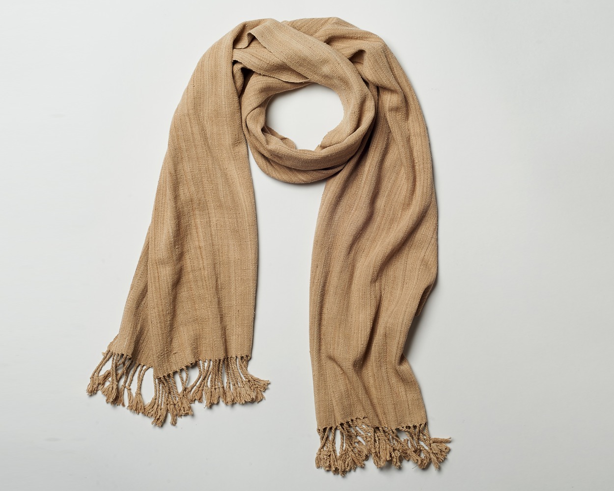 Drape yourself in a sumptuous all-lotus weaving with an organic, natural hue. Unique to Myanmar, lotus silk fibers are extracted from the stem of lotus plants and hand rolled into threads which are then spooled, dyed, and expertly woven into scarves and wraps. The entire process is by hand, creating a garment at once highly distinctive and elegant.